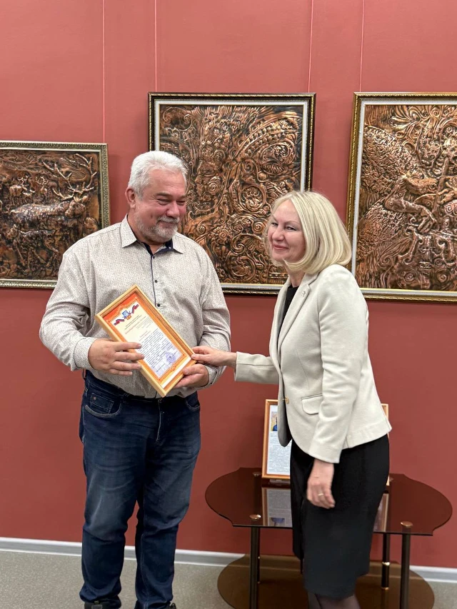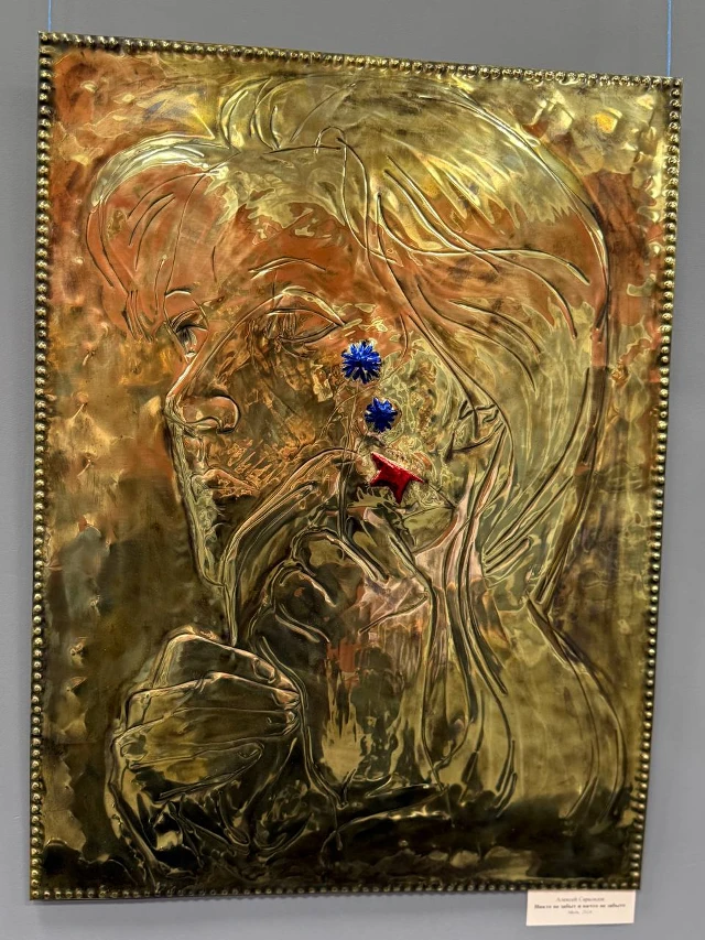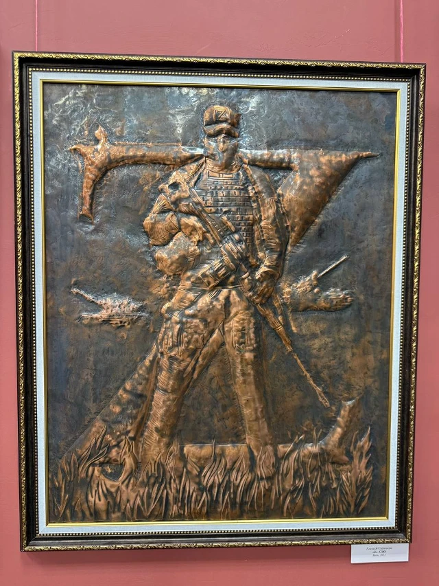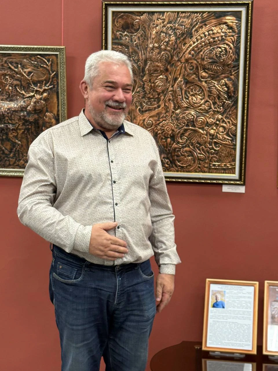 «Мы тогда делали всякие значки и небольшие поделки, — вспоминает мастер. — Это было первое знакомство с чеканкой. Потом работа, семья, дети, лихие девяностые — было не до творчества. А когда дети выросли, я случайно нашёл старые детские книжки и копирку, которой выжигал в школе. Думаю: выжигал ведь, значит, получится. И пошло. Вот уже лет десять занимаюсь плотно, перешёл от маленьких работ к большим полотнам…»