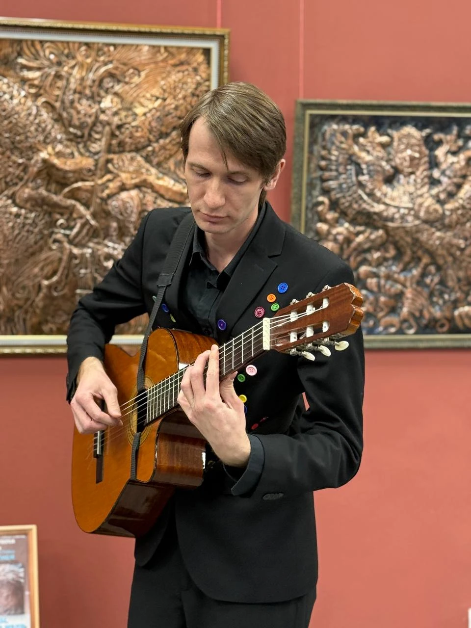 Поздравили художника-самоучку с открытием выставки заместитель начальника Управления культуры Светлана Васильева, а также солисты инструментального ансамбля «Цвет граната», исполнив пьесы «Прикосновение» и «Орфей».