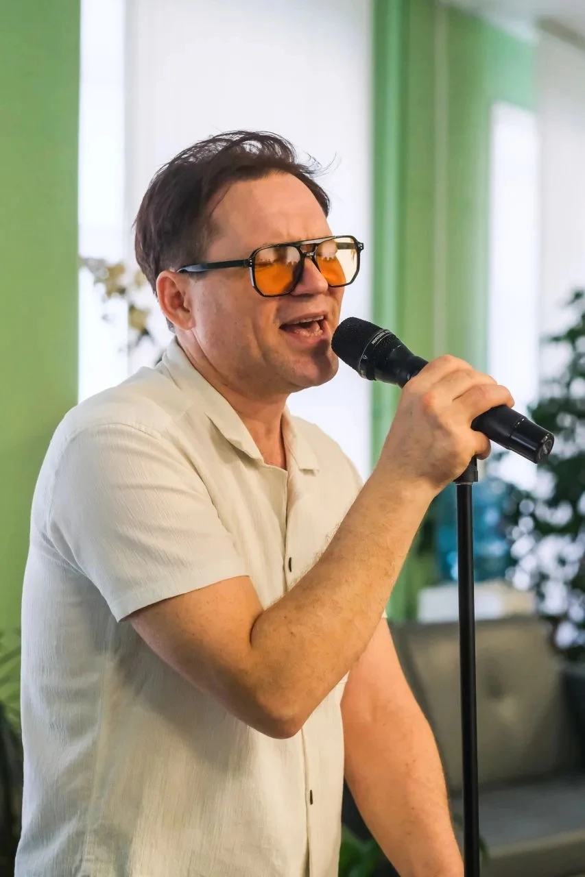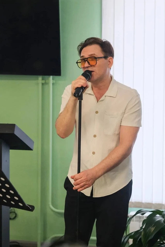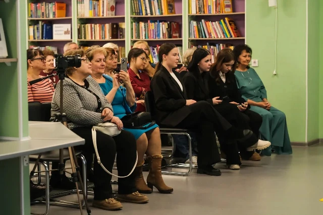 Музыкант представил слушателям новую необычную программу: большую часть исполненных им песен он написал в соавторстве с искусственным интеллектом. Также ко всем этим композициям нейросетью были сгенерированы яркие иллюстрации, которые демонстрировались на большом экране читального зала библиотеки.