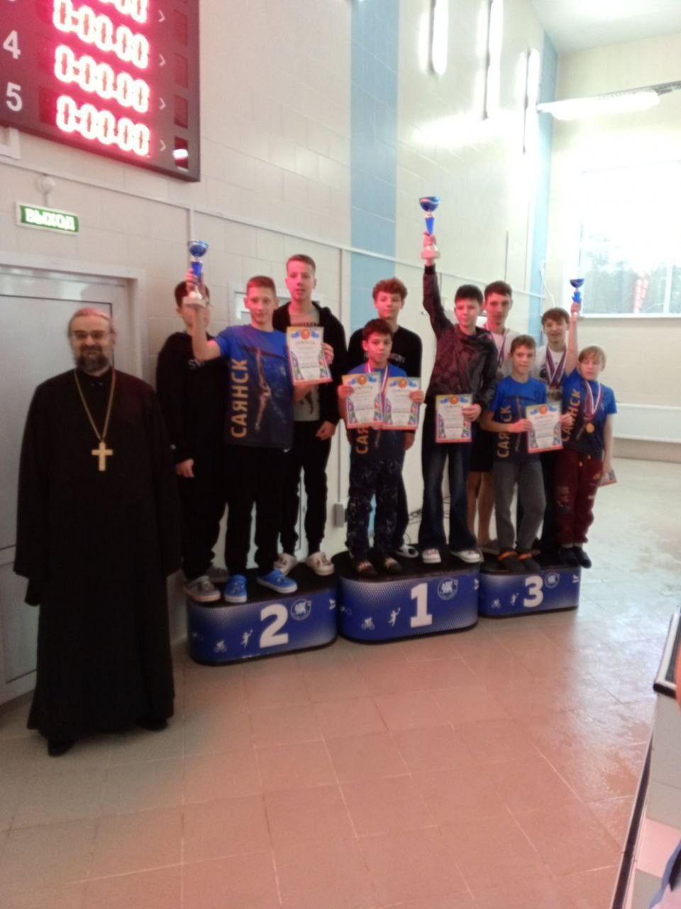 Победители и призёры были награждены медалями и грамотами, в эстафетном плавании кубками. Все участники получили сладкие призы от Саянской Епархии.