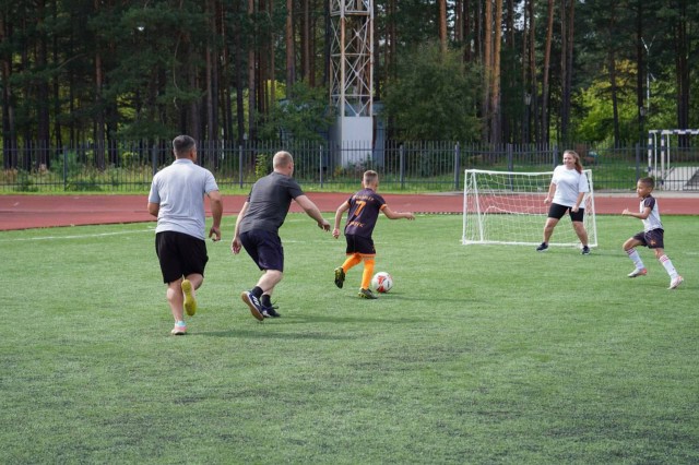 На городском стадионе семьи смогли принять участие в турнире по мини-футболу и поиграть в спортивные настольные игры.