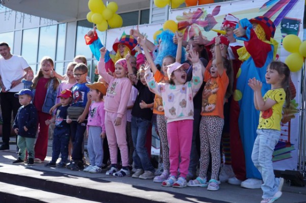 Главный праздник прошел на открытой площадке возле Дворца культуры «Юность», где малыши вместе с героями мультфильмов отправились в увлекательное приключение, наполненное танцами, песнями, конкурса и, конечно, мыльными пузырями.