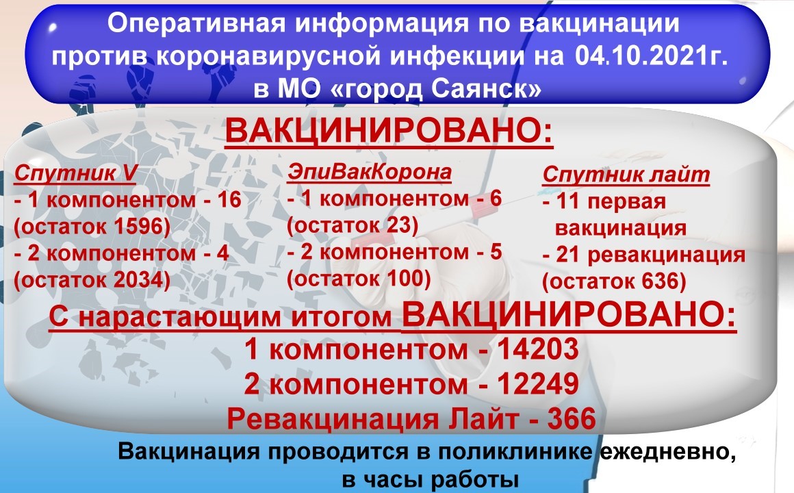 Оперативная информация по вакцинации против коронавирусной инфекции на 04.10.2021г.