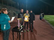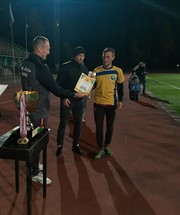 Сегодня состоялся финальный матч Кубка города по футболу. Всего в турнире принимали участие шесть команд. В полуфинальных встречах зиминский "Лесхоз" обыграл "Скиф СШ" - 2:0, а футбольный клуб "Куйтун" в серии пенальти оказался сильнее "Скифа". Таким образом, в матче за престижный трофей встретились футболисты "Лесхоза" из Зимы и игроки из Куйтуна. В напряжённой игре со счётом 3:0 победу одержали зиминцы. Розыгрышем Кубка команды закончили летний сезон и уже через две недели вступят в борьбу в Чемпионате города по мини-футболу.