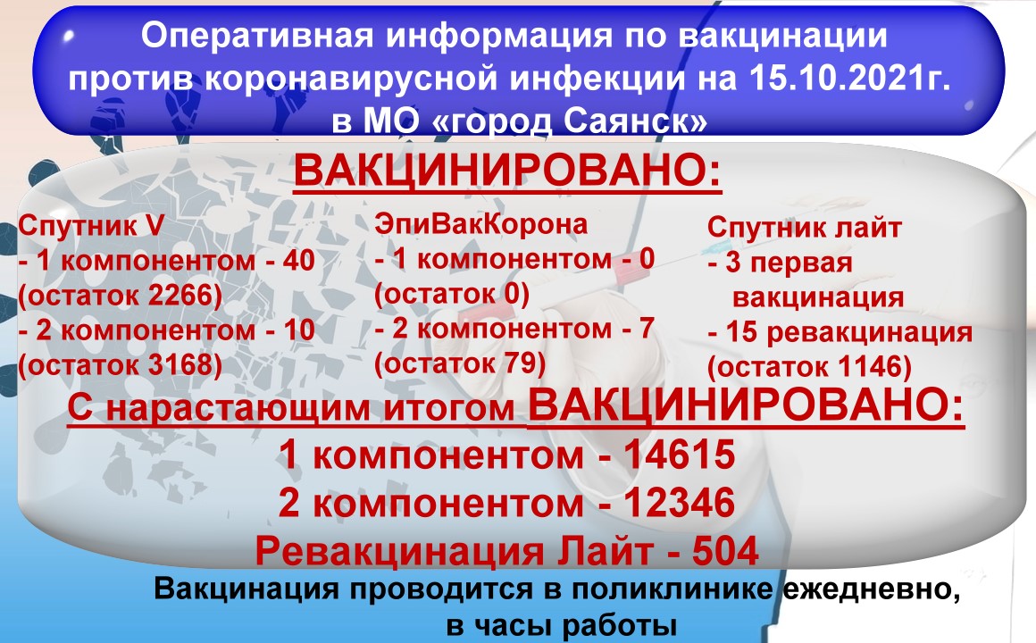 Оперативная информация по вакцинации против коронавирусной инфекции на 15.10.2021г.