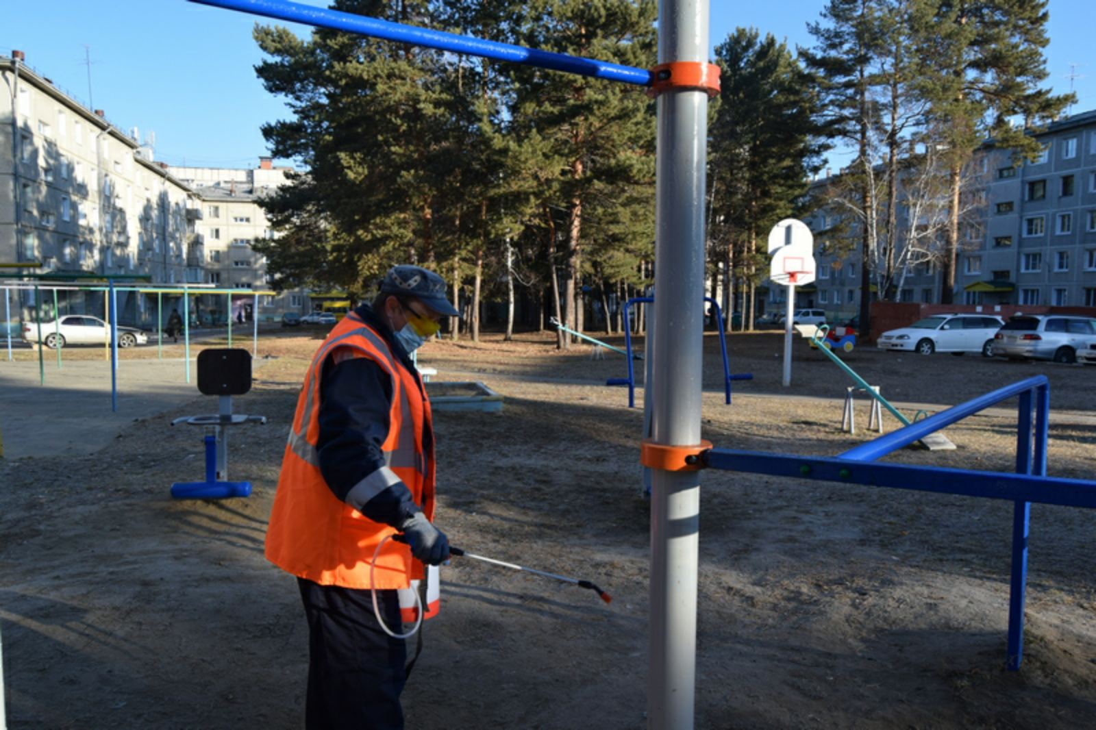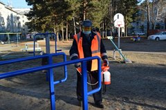Управляющие компании города продолжают проводить санитарную обработку малых форм во дворах многоквартирных домов. Начиная с ранней весны, еженедельно дворники тщательно обрабатывают специальным дезинфицирующим раствором скамейки у подъездов, детские площадки, борта песочниц, воркауты, уличные тренажеры, стойки баскетбольных колец – все, чего могут касаться руки. По словам Татьяны Александровны, дворника управляющей компании «Труд», на разовую обработку всех малых форм одного двора уходит порядка 7 – 10 литров дезраствора.
