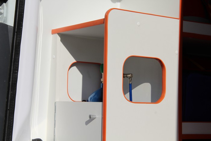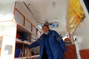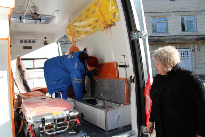 − Машина оборудована так называемой укладкой врача для оказания акушерской, педиатрической, анестезиологической и реанимационной помощи. В нее входят все необходимые медикаменты, инструментарий, дефибриллятор, три вида носилок, каталка, комплект шин для иммобилизации, штативы, аппарат для кислородной терапии, аппарат искусственной вентиляции легких, кислородные баллоны, электрокардиограф, аппарат, ингаляционного наркоза, пульсоксиметр, небулайзер, пикфлуометр, глюкометр, инфузионный насос, − перечисляет осматриваемое оборудование врач скорой помощи Ольга Гомолко. – Есть кислород стационарный, который стоит в салоне, есть переносной. Термосумка для растворов, которая сохраняет нужную температуру и не позволяет им замерзнуть зимой. В салоне размещен рециркулятор, что особенно актуально в период пандемии, кондиционер, который просто необходим летом.