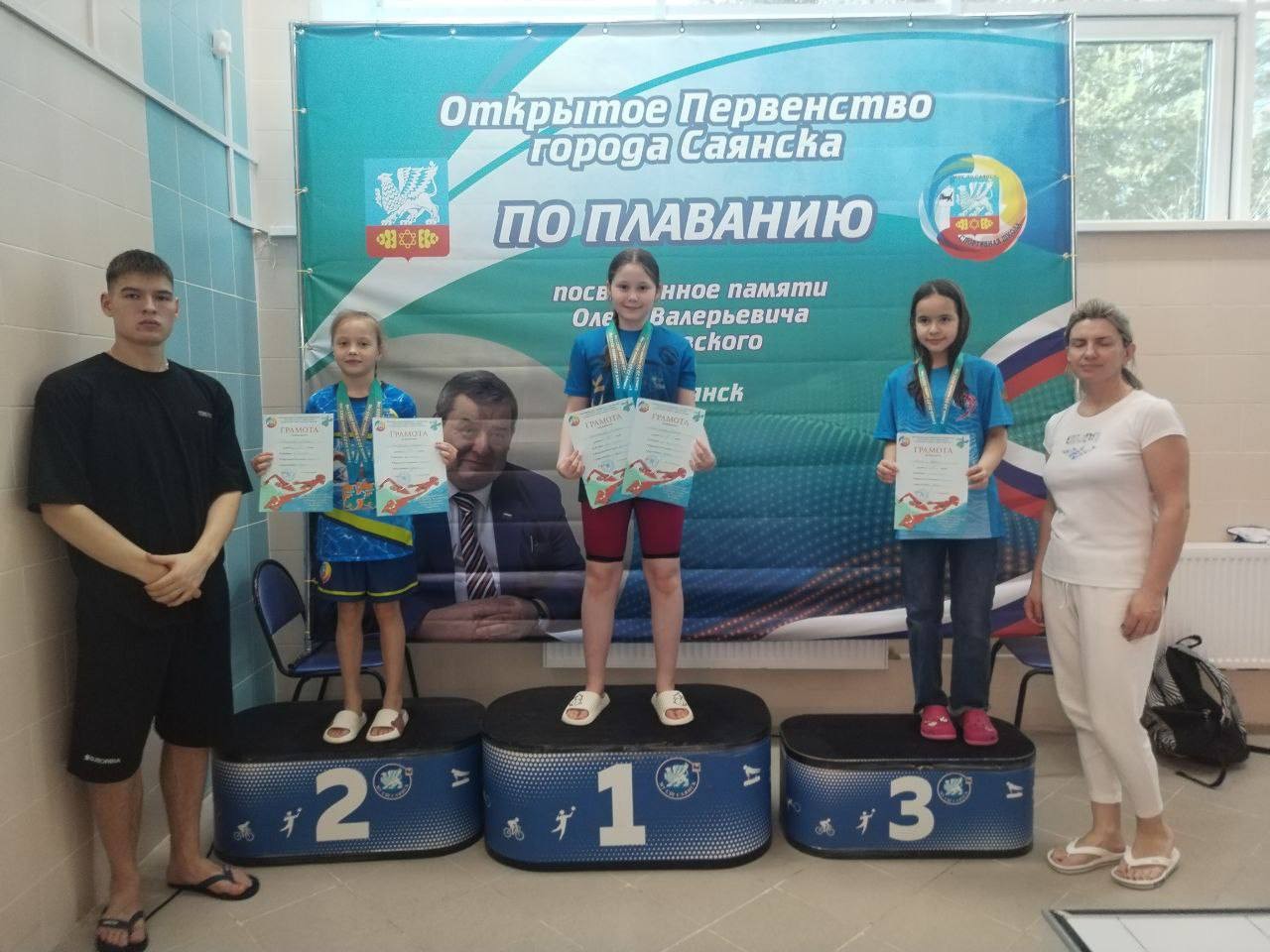 В комплексом эстафетном плавании 4 по 50 метров команда девочек города Саянска заняли 1 и 2 место.