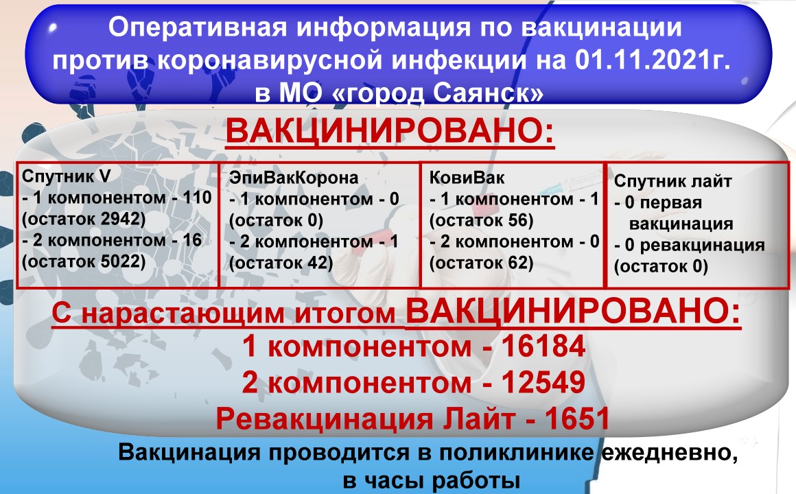 Оперативная информация по вакцинации против коронавирусной инфекции на 01.11.2021г.