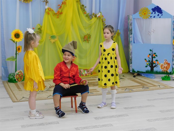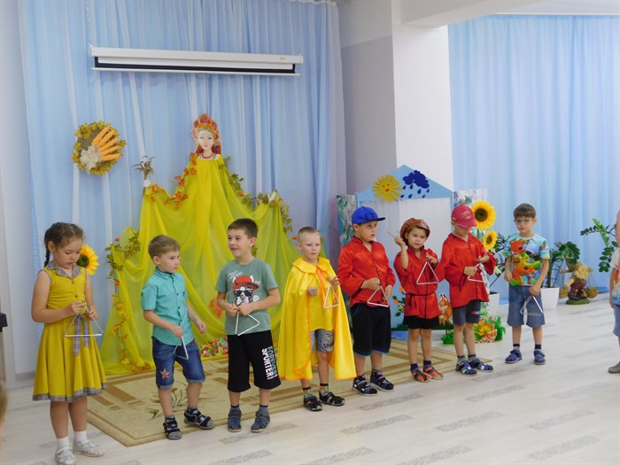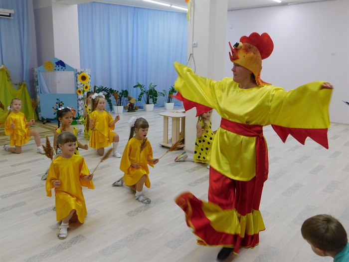 Доброй волшебницей заглянула на праздник красавица Осень, для которой воспитанники старших дошкольных групп, в нарядных костюмах вместе с Петушком, исполнили инсценировку «Колосок».