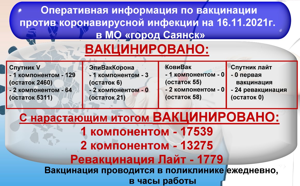 Оперативная информация по вакцинации против коронавирусной инфекции на 16.11.2021г.