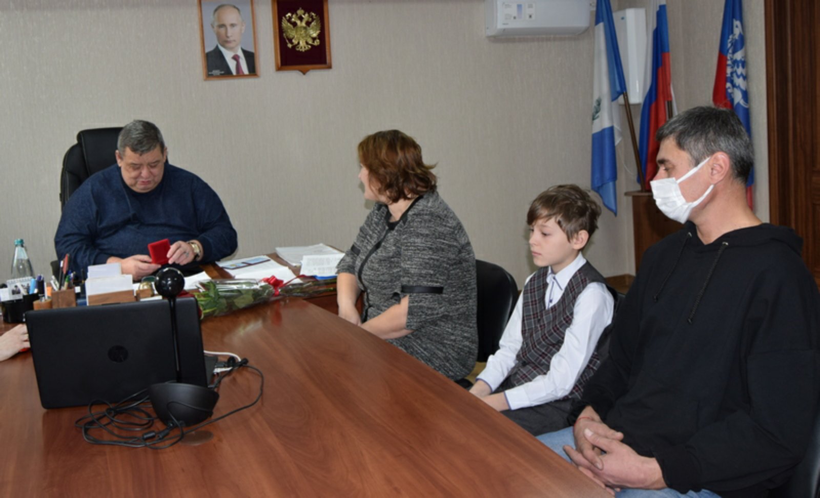 На встрече с мэром присутствовали супруг Любови Сергеевны Игорь Владимирович и десятилетний сын Иван, который тоже не остался без подарка. Мэр вручил ему свой магнитный кубик антистресс.