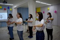 Затем опытным добровольцам из городского отряда волонтеров «Мы вместе!» дошколята рассказали о том какие добрые дела они уже совершили. Например, недавно малыши участвовали в акции ко Дню отца, а накануне Дня матери они сделали яркие топеры, которые в ближайшее время подарят прекрасным жительницам Саянска. На них дети изобразили сердца ладошками и написали пожелания.
