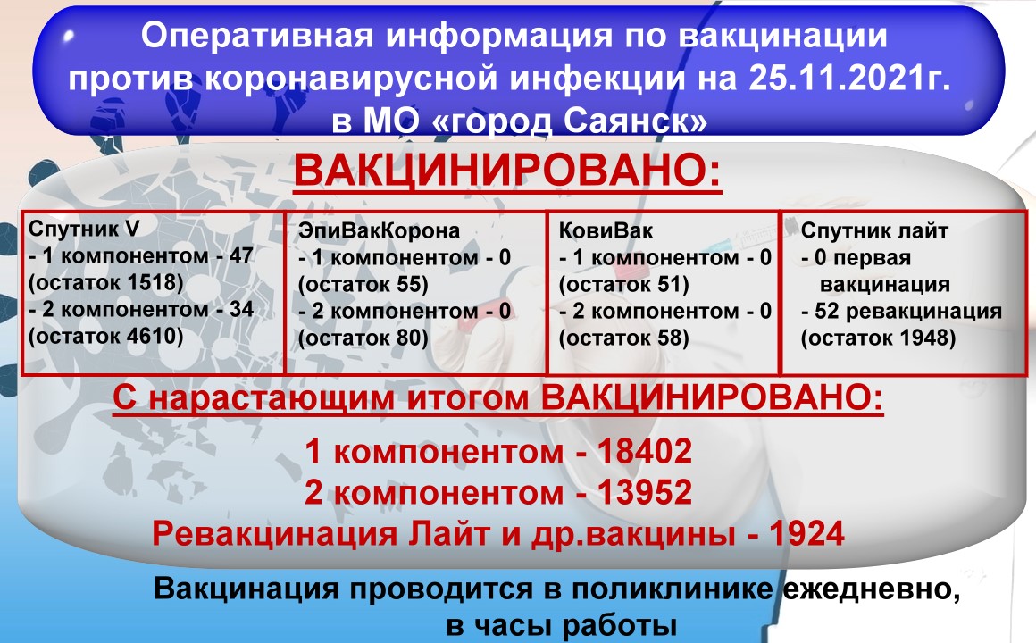 Оперативная информация по вакцинации против коронавирусной инфекции на 25.11.2021г.