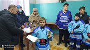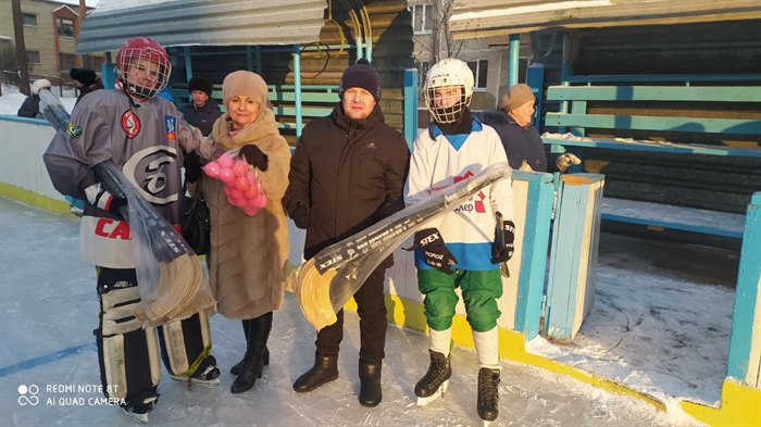 На открытии турнира с приветственным словом выступила начальник отдела социального развития предприятия «Саянский бройлер» Марина Ляпина. Она вручила команде «искровцев», победившей в сегодняшнем матче, комплект из двадцати клюшек и столько же мячей.