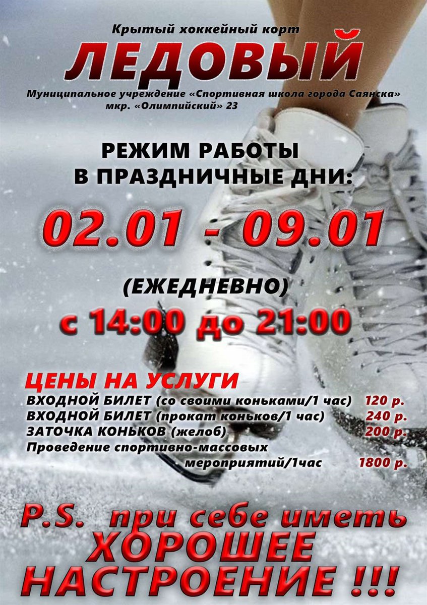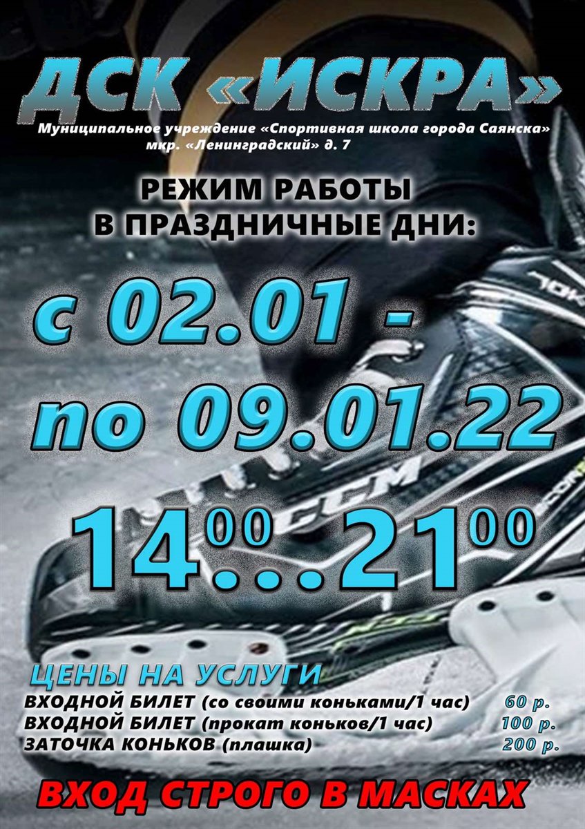 Режим работы ДСК "Искра" и крытого хоккейного корта "Ледовый" в праздничные дни