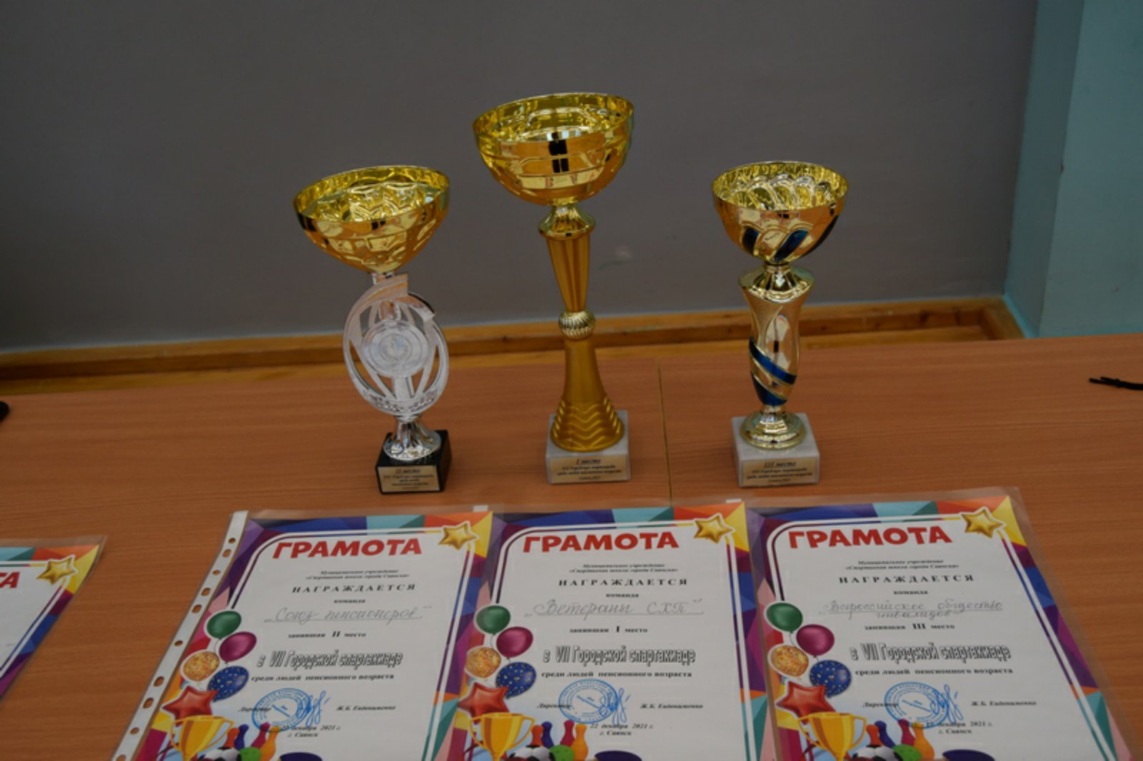 По завершении конкурсной программы состоялось награждение участников. Победителем спартакиады стала команда «Ветераны Саянскхимпласта», второе место заняла команда Союза пенсионеров, на третьем месте – команда общества инвалидов. Победителям вручили грамоты и кубки, а участникам – городскому Совету ветеранов и ветеранам спортивной школы – сладкие пироги. Таким образом, награды достались всем, но самая главная награда, которую получили участники спартакиады – это бодрость духа и желание жить в движении.