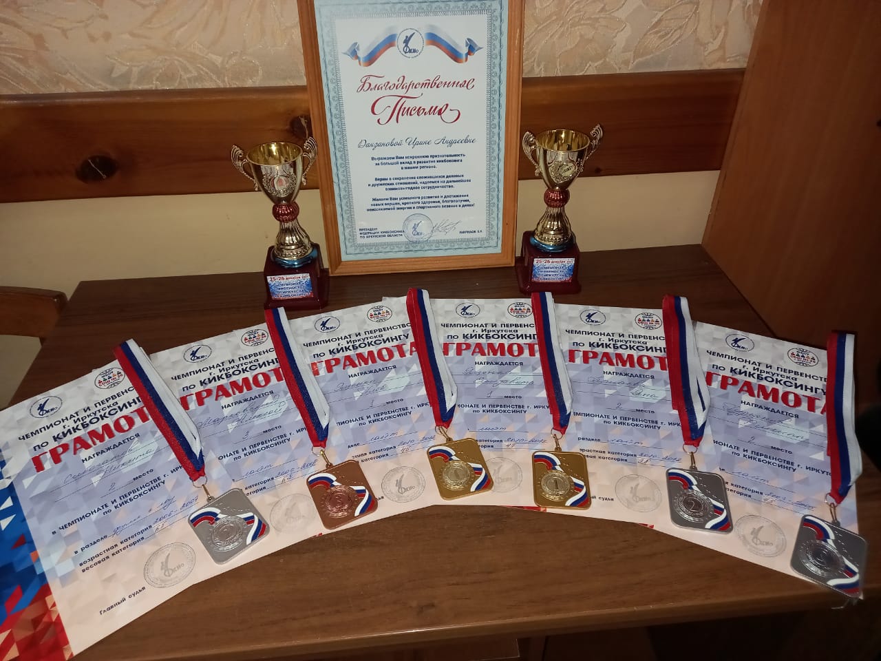 С 24 по 26 декабря проходил Чемпионат и первенство г. Иркутска по кикбоксингу, который собрал более 100 участников из разных городов Иркутской области. Наш город представляли спортсмены, занимающиеся под руководством Ирины Данзановой. Никита Сибогатов, Алексей Марковский, Филипп Гурьянов, Глеб Яценко, Яна Пылаева и Елизавета Яценко - все вернулись домой с наградами. У Никиты попался сильный соперник из г. Ангарска. Проиграв по очкам, победу одержал ангарчанин и Никита стал вторым. У Яны это был второй бой, не совладав со своими эмоциями, она уступила сопернице из г. Иркутска, поднявшись на второе место пъедестала. У Филиппа, Лизы и Глеба это были первые соревнования. Показав свой боевой настрой и силу духа, Глеб уверенно одержал победу над иркутянином, тем самым вышел в финал. В финальном поединке он встретился с соперником из г. Ангарска, ввиду явного преимущества победу одержал Глеб и стал чемпионом этих соревнований. Также Елизавета уверенно одержала победу над иркутской спортсменкой и стала чемпионкой. Филиппу попался опытный боец из г. Иркутска, уступив ему, он стал вторым. Алексей показал хороший бой, но ангарчанин оказался на один балл впереди и у нас в копилке ещё одно серебро. Победители были награждены кубками, медалями и грамотами, призёры - медалями и грамотами. Год ребята завершают хорошими результатами.