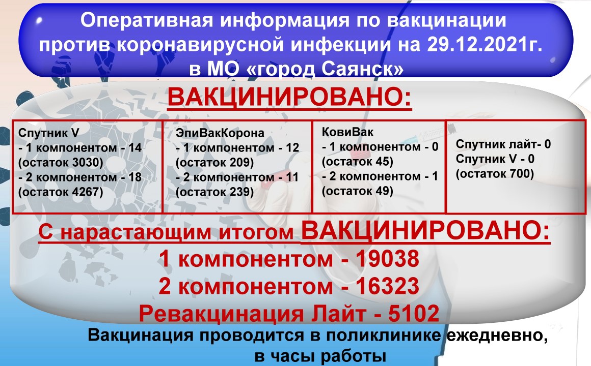 Оперативная информация по вакцинации против коронавирусной инфекции на 29.12.2021г.