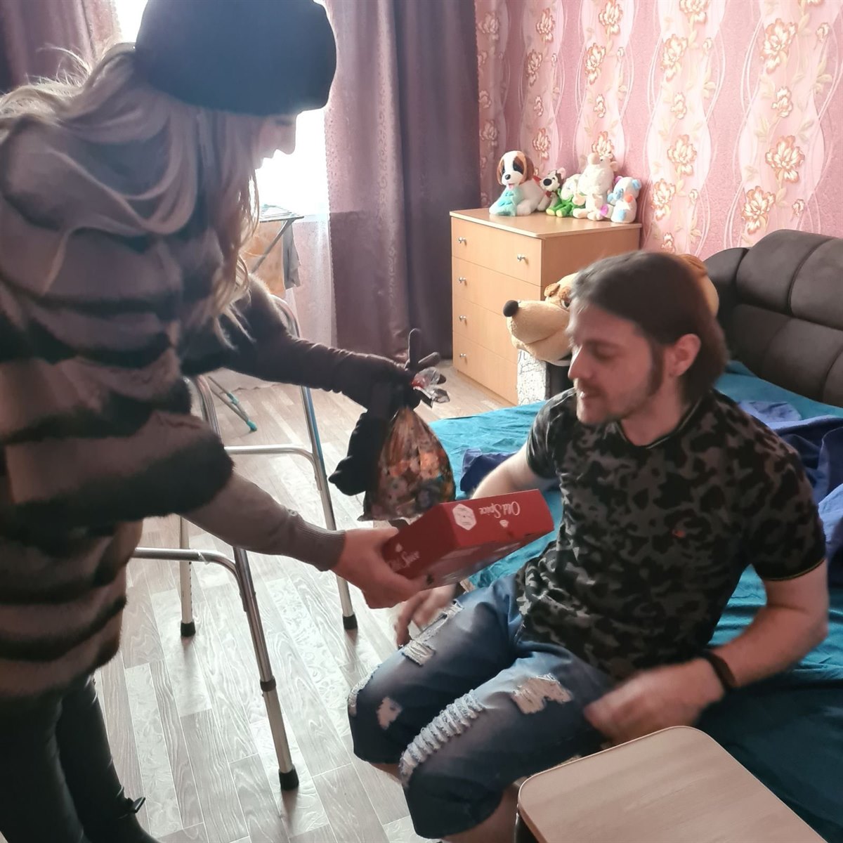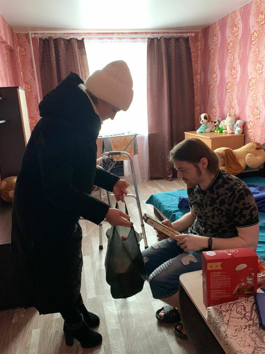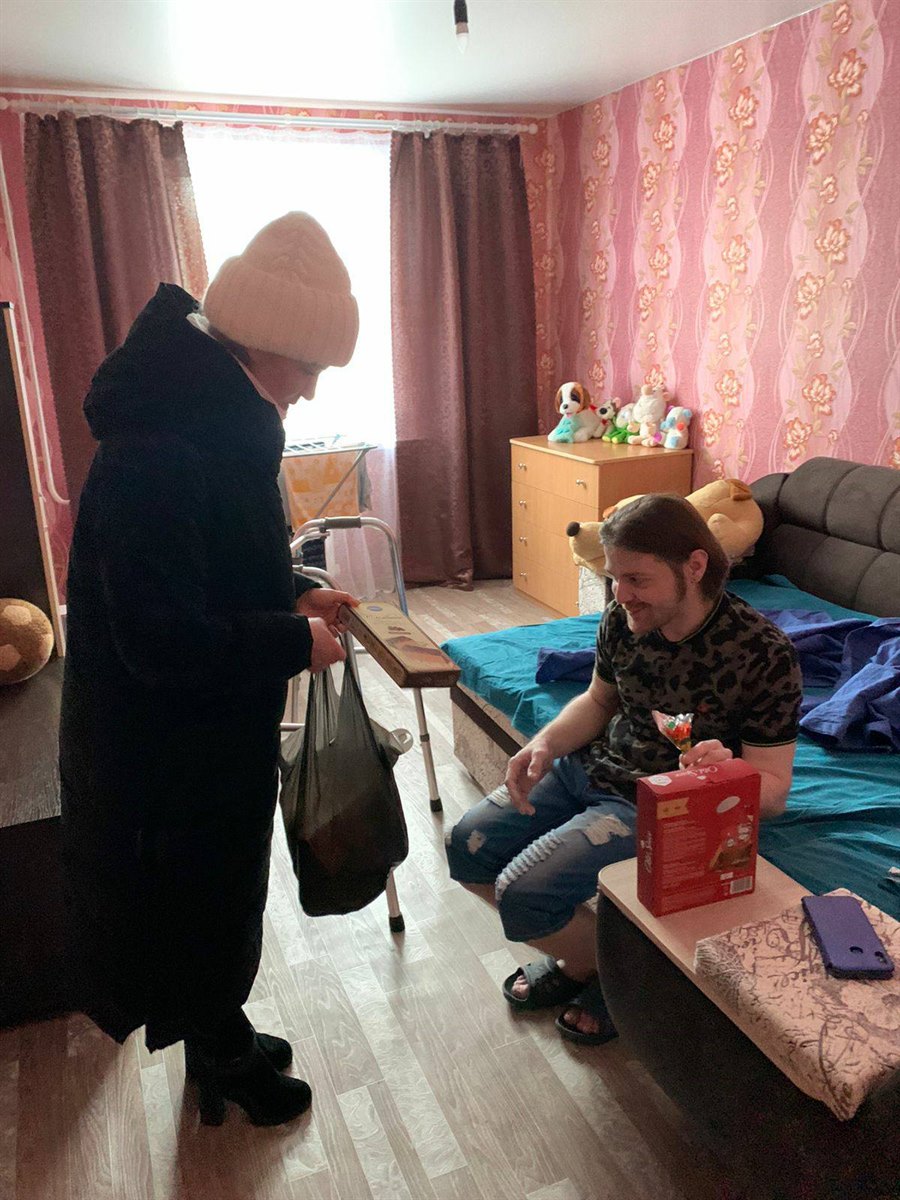 Сегодня представитель Саянского благотворительного фонда Полина Сурина и сотрудник городской администрации Анастасия Еремеева навестили Сергея не с пустыми руками. Они привезли продукты питания, чай, конфеты, фрукты – все, чтобы накрыть праздничный стол, а также подарочный мужской косметический набор. Девушки от имени мэра города Олега Боровского поздравили его с наступающим праздником, а Сергей в ответ адресовал им и Олегу Валерьевичу искренние слова благодарности за заботу.