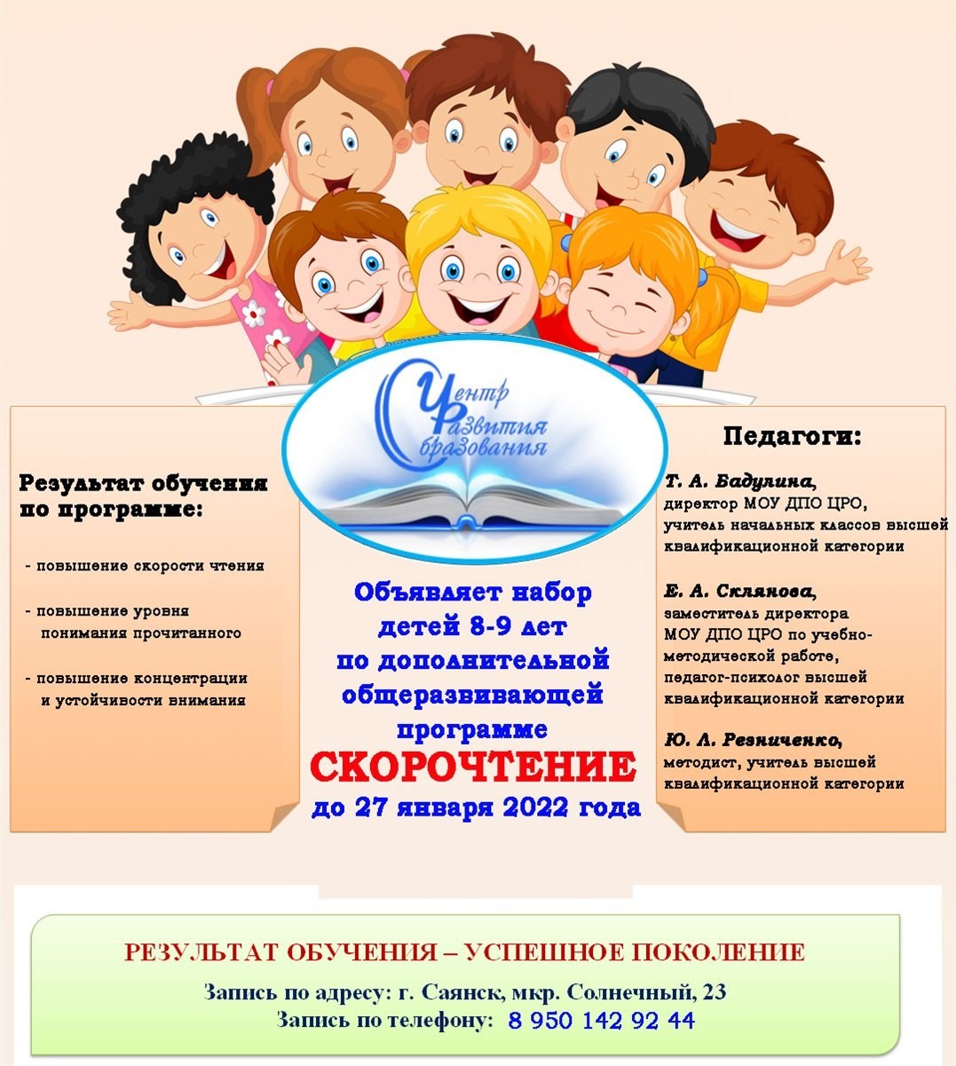 Набор детей 8-9 лет по программе СКОРОЧТЕНИЕ