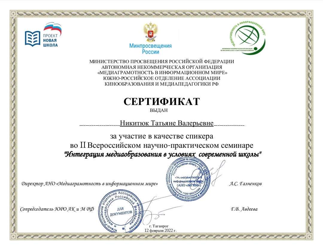 Семинар проводился с целью обобщения и распространения передового профессионального опыта учителей, использующих медиаобразование на уроках и во внеурочной деятельности. Так Татьяна Никитюк поделилась опытом работы по внедрению медиатехнологий в учебно-воспитательный процесс школы по «Формированию информационного иммунитета у обучающихся». Учитель информатики Татьяна Гусева продемонстрировала практический опыт работы учреждения по «Смешанному обучению (ротация станций)». Опыт наших педагогов получил живой отклик коллег из других городов России.