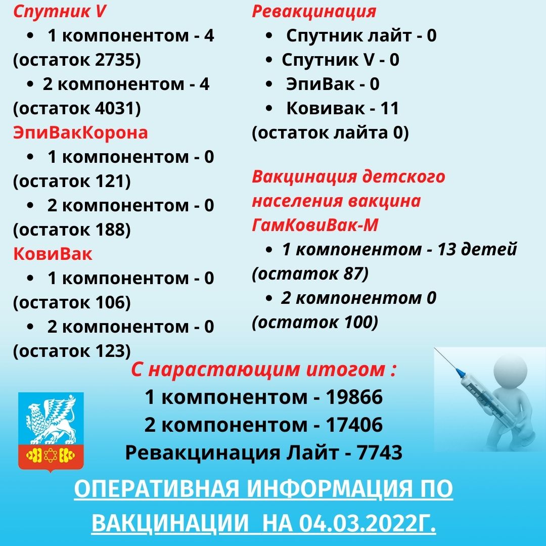 Оперативная информация по вакцинации против коронавирусной инфекции на 04.03.2022г.