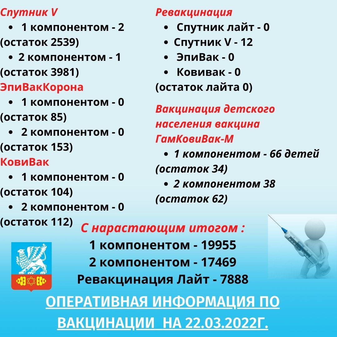 Оперативная информация по вакцинации против коронавирусной инфекции на 22.03.2022г.