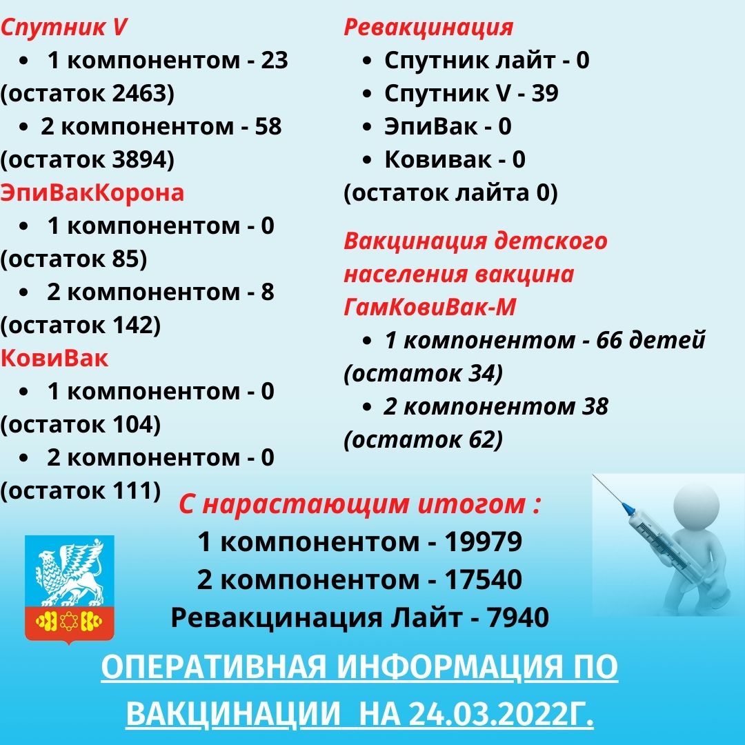 Оперативная информация по вакцинации против коронавирусной инфекции на 24.03.2022г.