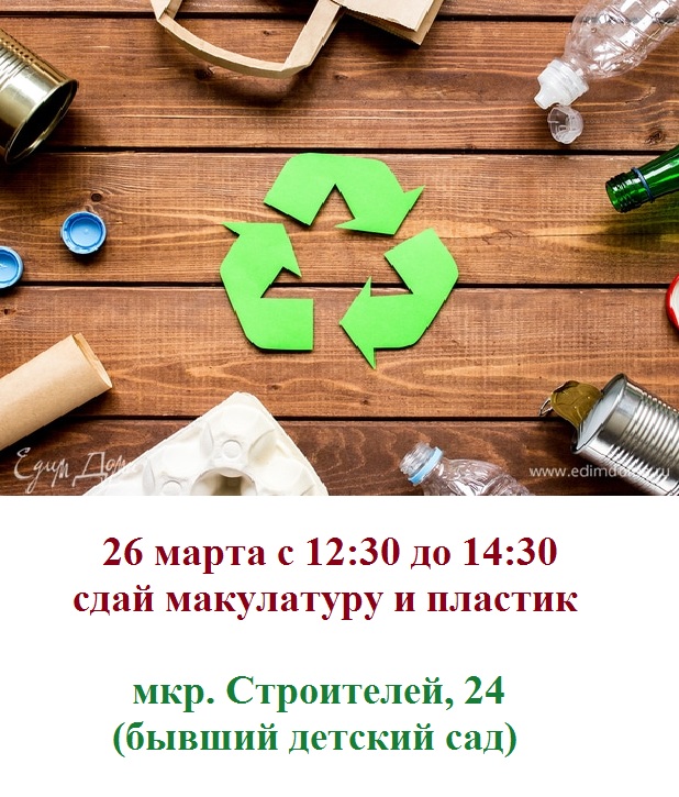 По традиции, в последнюю субботу месяца, 26 марта, на территории благотворительного фонда по адресу: микрорайон Строителей, 24, будет организован прием макулатуры и пластика.