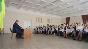 Сегодня мэр продолжил встречи со старшеклассниками саянских школ, он побывал в пятой и четвертой школах. Школа №5 подготовилась к приему знатного гостя основательно – парадная форма, белые фартуки и сорочки, банты и множество вопросов, волнующих подрастающее поколение. В основном детей интересует ситуация, связанная с Украиной, введенными санкциями и их возможными последствиями.