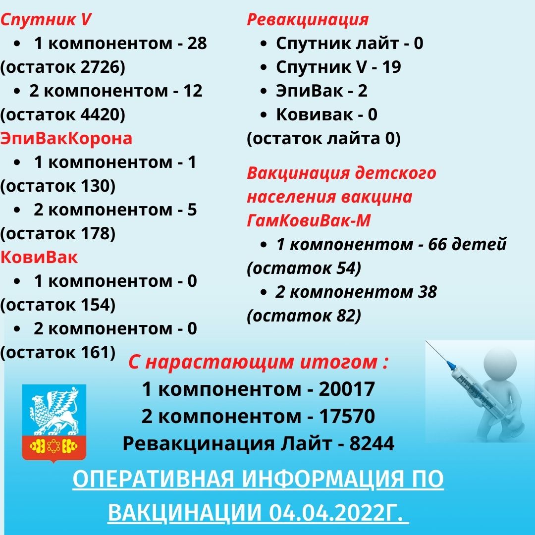 Оперативная информация по вакцинации против коронавирусной инфекции на 04.04.2022г.
