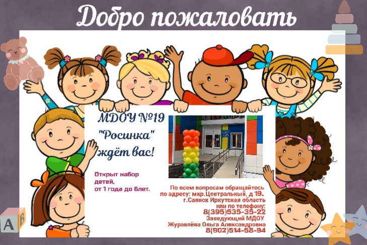 Открыт набор детей, от 1 до 6 лет в дошкольное учреждение № 19 «Росинка»