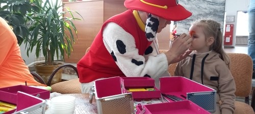 Степан, студент третьего курса медицинского колледжа по специальности фельдшер, поведал: «Занимаюсь в творческой мастерской третий год. Изначально я пришел, так как мне рассказали, что здесь организовывают праздники, а мне это очень сильно нравится: организация, проведение, ты видишь всю закулисную жизнь, участвуешь на сцене, интерактивить нравится. Я уже побывал во многих ролях, разными персонажами. Сегодня я делал аквагрим ребятам в роли Маршалла из мультфильма «Щенячий патруль», они сами выбирали эскиз рисунка, тихонько сидели, пока я рисовал и потом гордые шли выбирать, чем же им заняться. Самый классный отзыв – это радость детей, видеть, что им нравится. Для сегодняшнего представления я делал шапки для фиксиков Ноли и Шпули из поролона, придумывали, искали выкройки все вместе, с помощью нашего руководителя».