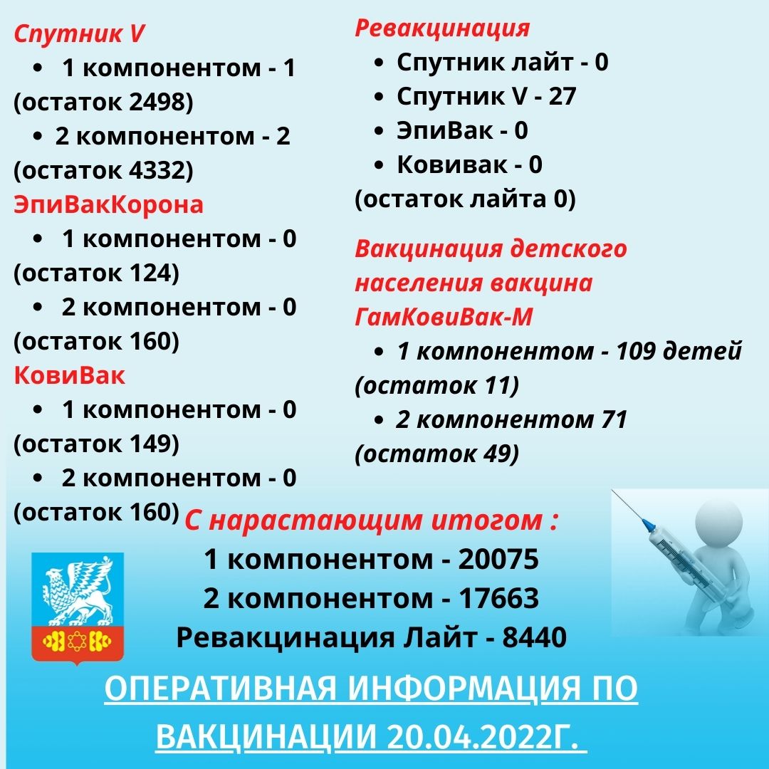 Оперативная информация по вакцинации против коронавирусной инфекции на 20.04.2021г.