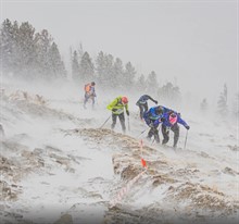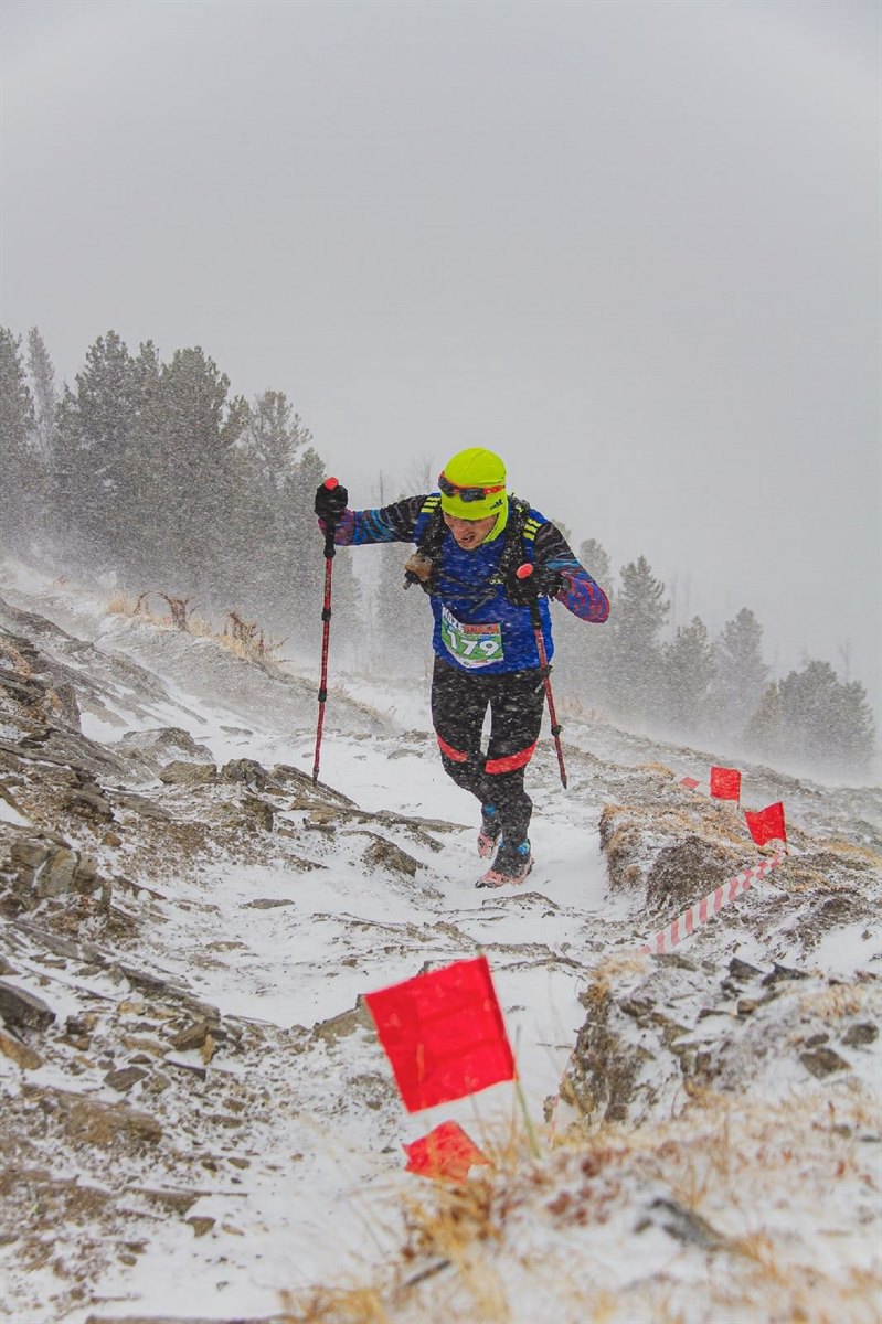 В этом году забег проходил в крайне экстремальных погодных условиях - на вершине, да и по всей дистанции участники боролись с сильным ветром и снегом.