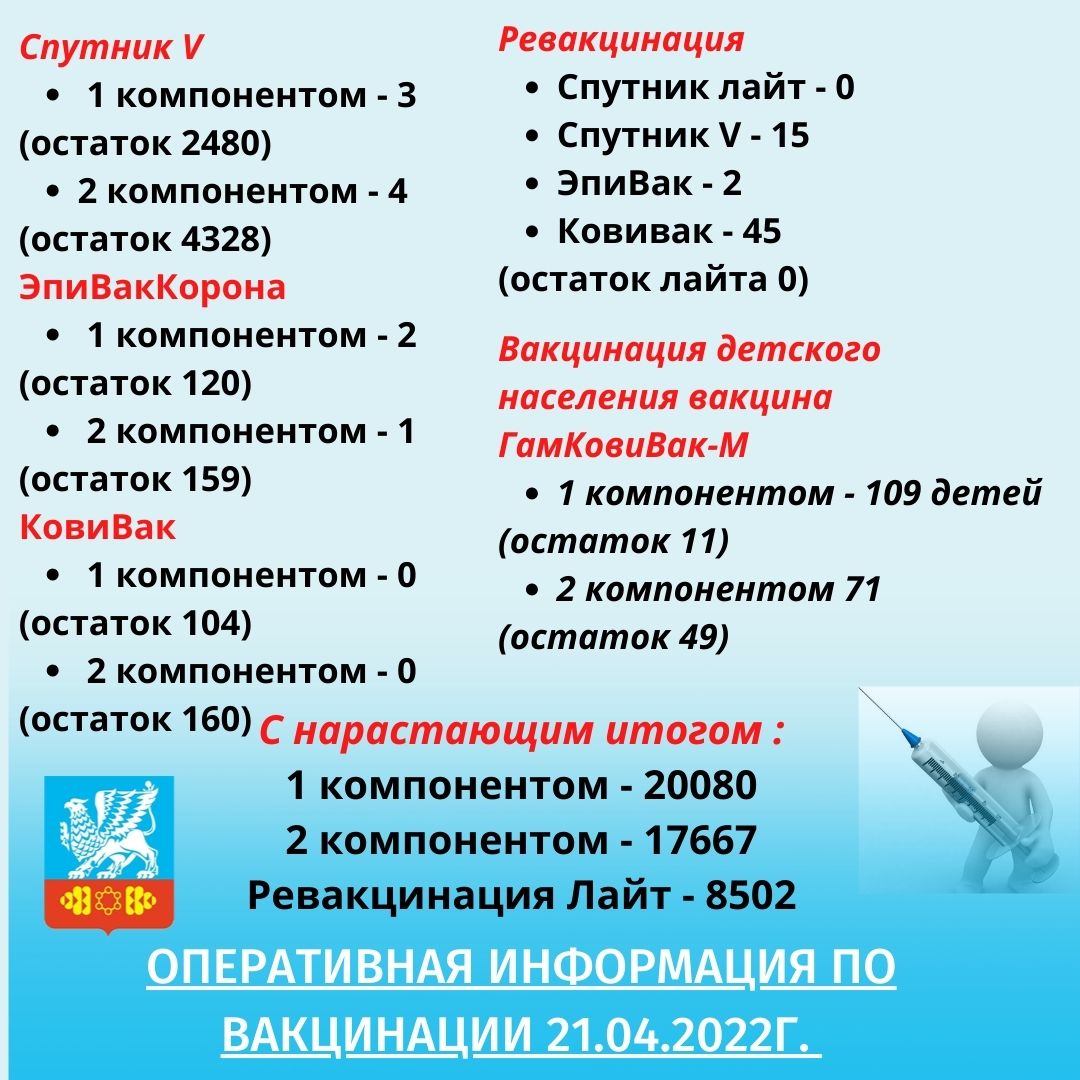 Оперативная информация по вакцинации против коронавирусной инфекции на 21.04.2021г.