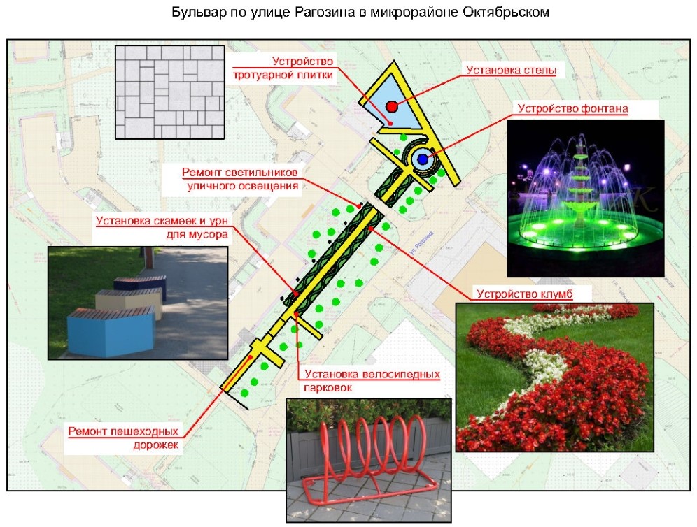- бульвар по улице Рагозина в микрорайоне Октябрьском;