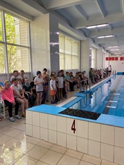 В бассейне "Золотая рыбка" проводилось первенство города по плаванию. Здесь на дорожках соревновались 120 пловцов. Все участники представляли саянскую спортивную школу. Ребята состязались в плавании разными стилями в эстафетах на пятьдесят и сто метров.