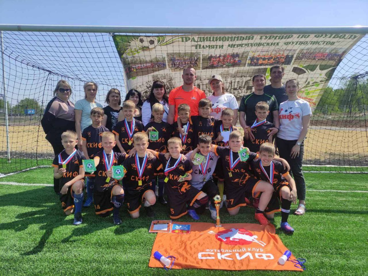 В ходе финального поединка наша команда уступала иркутянам 1:3, но юные футболисты "Скифа" сумели собраться и одержали победу со счётом 5:3. Таким образом, "Скиф" стал чемпионом турнира! Игроки клуба "М 10" в турнире стали вторыми, третье место у "Сибсканы".