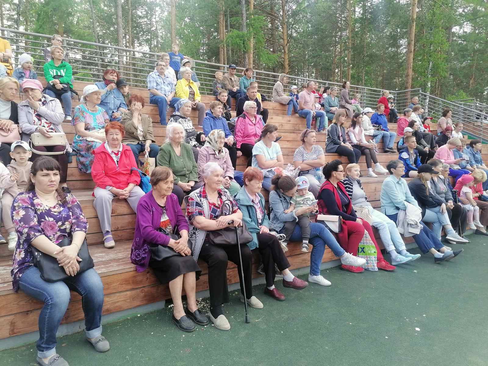 Посетители парка, вдоволь насладившись развлечениями и мороженым с удовольствием заполнили трибуны стадиона.