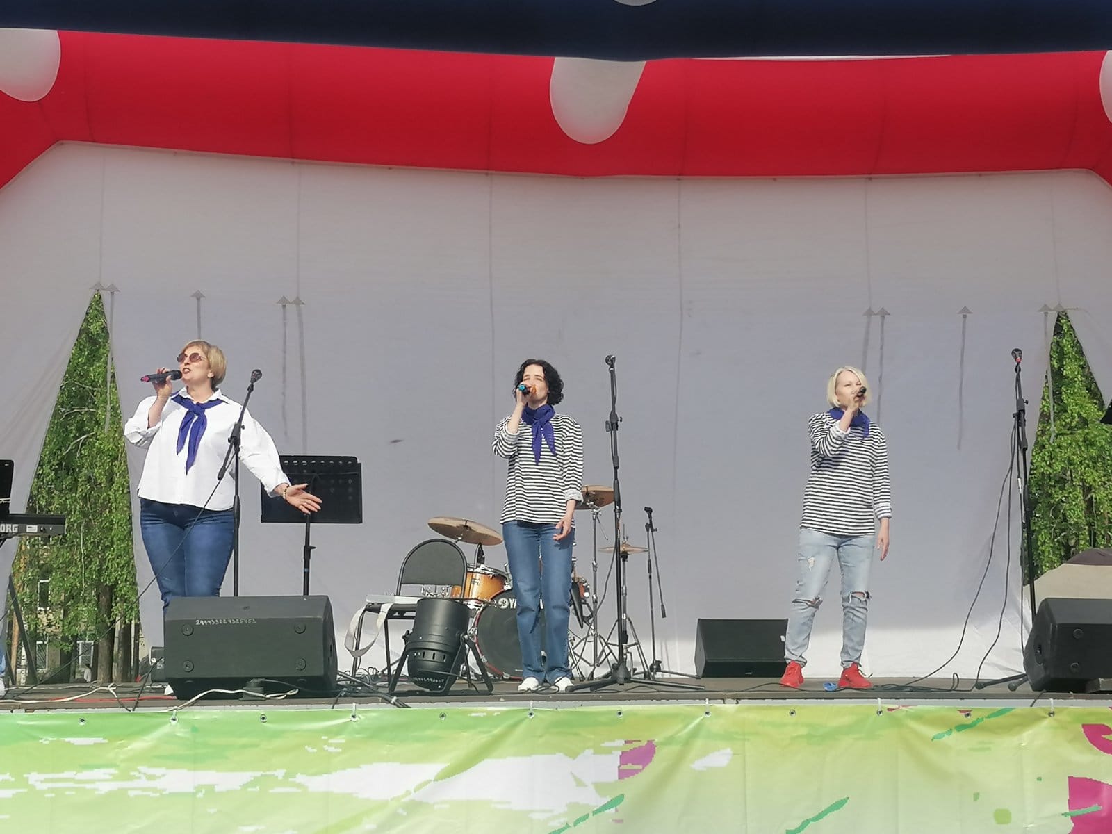 На сцене, разместившейся на стадионе гимназии, прозвучали известные песни и музыкальные композиции из популярных мультфильмов, а также детские песни в исполнении коллективов Дворца культуры.