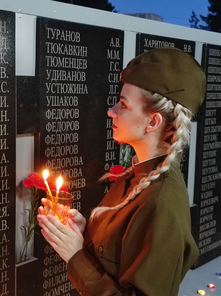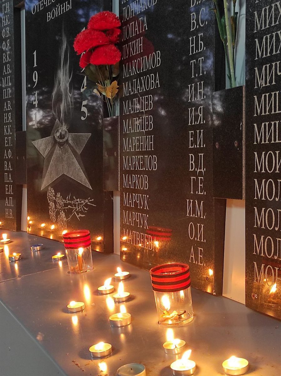 Сегодня в сквере имени 40-летия Победы в Великой Отечественной войне саянцы зажигают свечи в знак общей печали и скорби, склоняют головы перед вечной памятью не вернувшихся с полей сражений сыновей и дочерей своей Родины.