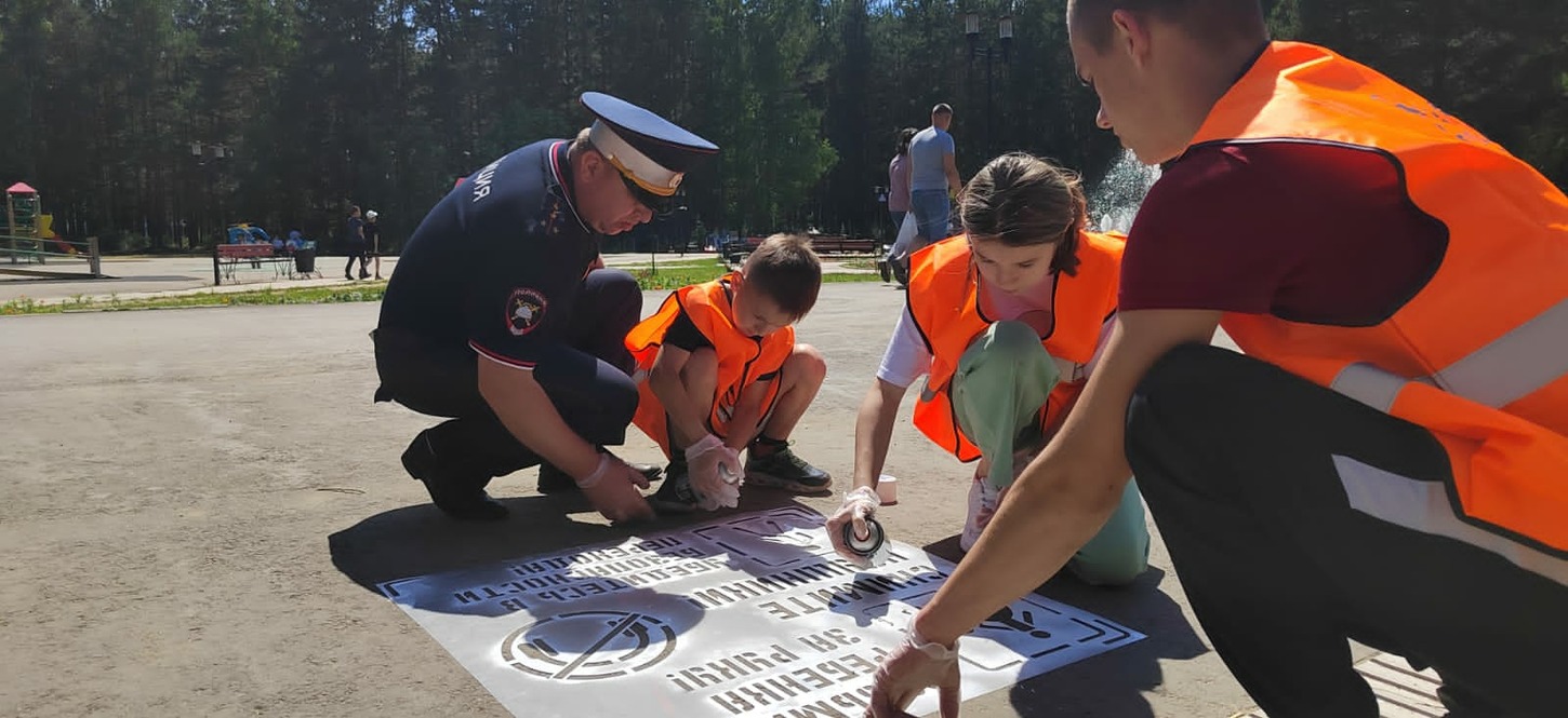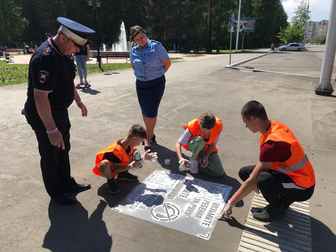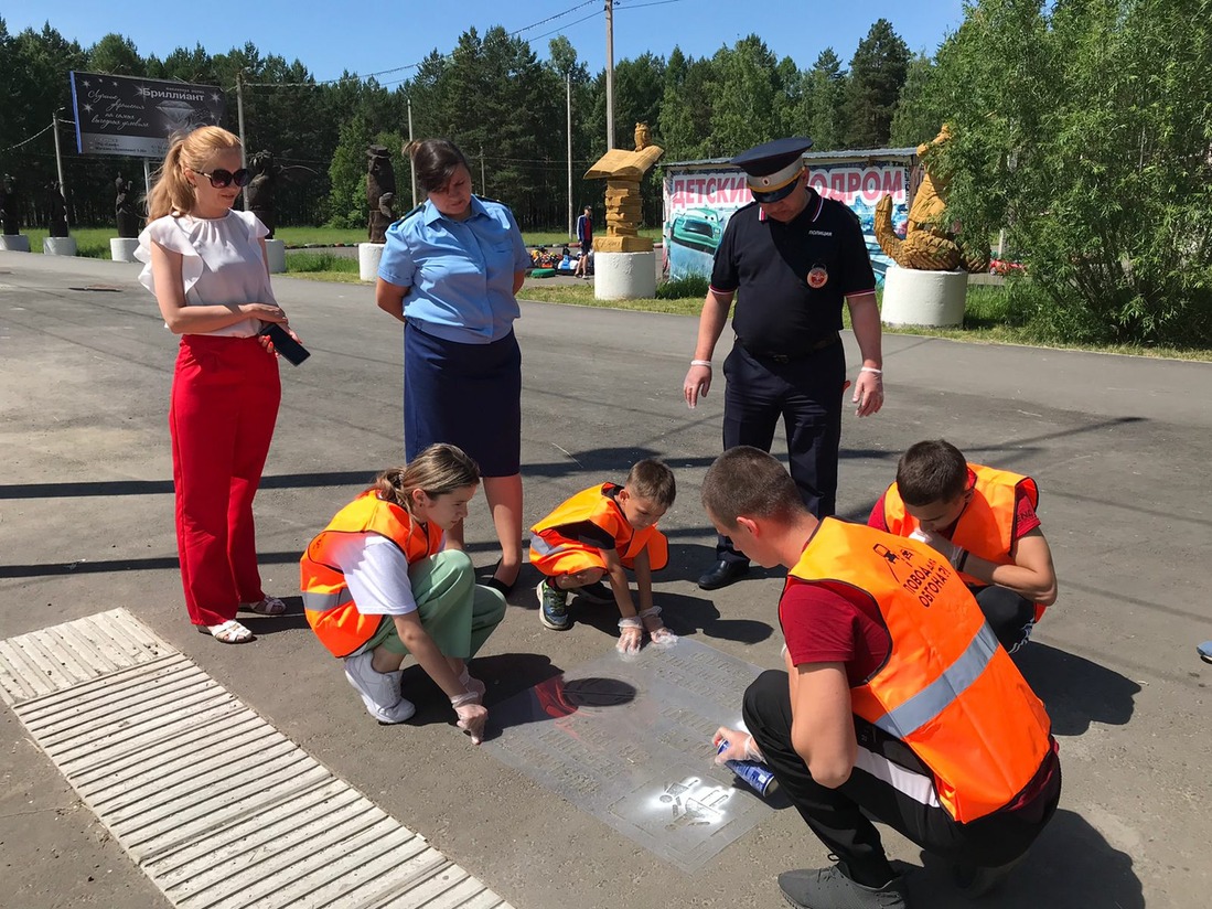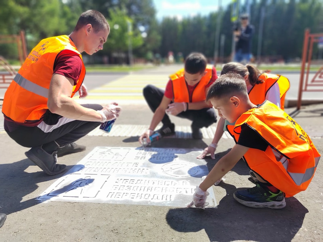 Современные, яркие и призывающие к соблюдению безопасности при пересечении проезжей части трафареты появлялись на улицах Саянска.