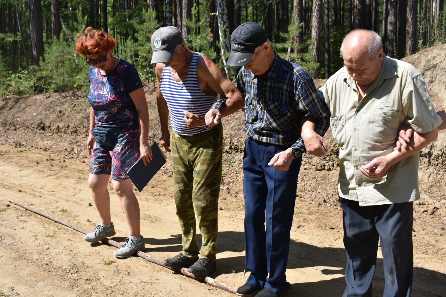 Позитивные и жизнерадостные люди серебряного возраста собрались на лыжной трассе за микрорайоном Строителей, чтобы поучаствовать в летнем спортивно-оздоровительном мероприятии. Четыре команды по 10 человек – это Совет ветеранов, «Союз пенсионеров», «Ветераны Химпласта» и «Дети войны». Они всегда готовы сразиться в дружеских соревнованиях – будь то культурные или спортивные события. Главное – в веселой компании и с хорошим настроем.