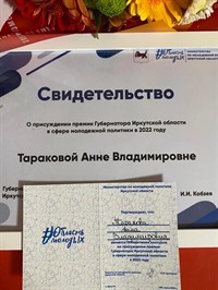 Торжественное вручение премии состоялось в конце июня на фестивале Дня молодёжи в Иркутске. В число лучших вошли три юных саянца: ученики школы №4 имени Д. М. Перова – Нино Иремашвили и Учуватова Валерия, и выпускница школы №5 – Таракова Анна. О том, какой вклад они внесли в развитие Иркутской области можно будет прочитать в следующем номере газеты "Саянсие Зори".