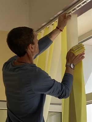 Сегодня в «Боровичке» фирма «Паритет» приступила к монтажу жалюзи – современного варианта украшения окон. Специалисты компании трудились на группе для детей раннего возраста. Индивидуально подобранные для каждого помещения шторы удачно вписываются в интерьер, придавая ему законченность и оригинальность. Для каждого интерьера выдержано единое цветовое решение, будь то групповая комната, спальня, приемная или санузел.