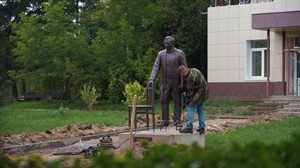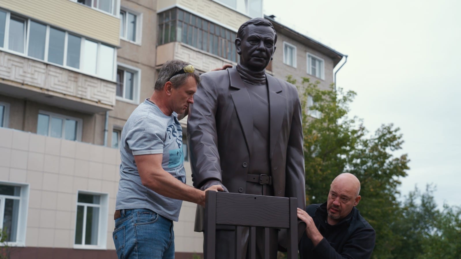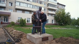 На этой неделе уже готовую фигуру привезли в Саянск из Алтайского края. Скульпторы Эдуард Добровольский и Андрей Сухогузов, которые ранее создали для нашего города памятник Ефиму Славскому, сами установили скульптурную композицию на подготовленное место.