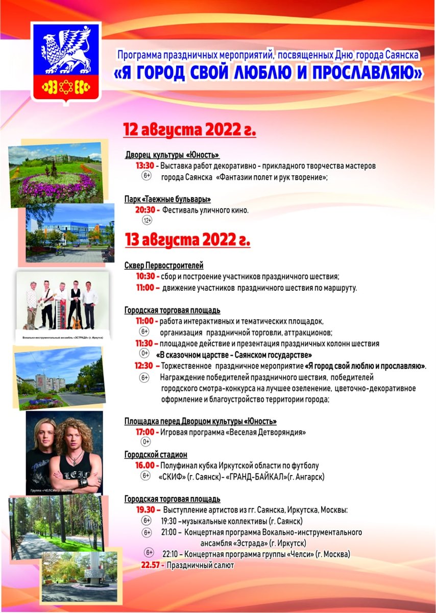Программа праздничных мероприятий, посвященных Дню города Саянска "Я город свой люблю и прославляю"