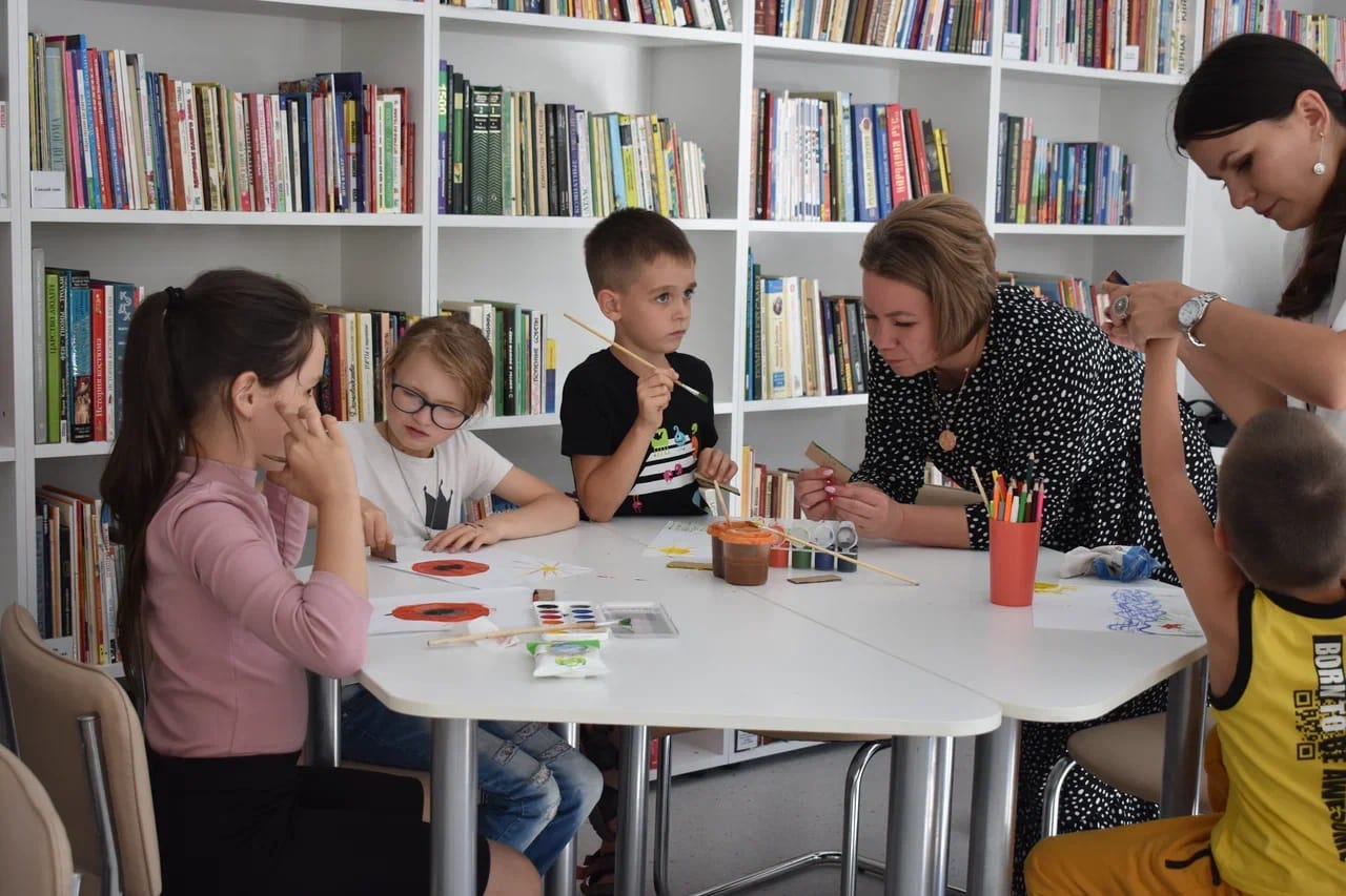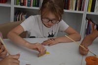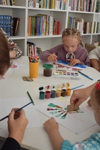 Сотрудники детской модельной библиотеки учили ребят рисовать картоном. Использовать этот материал в качестве кисточки понравилось юным художникам. Они с удовольствием смешивали краски и придумывали собственные сюжеты, делились своими идеями. О том, как прошел мастер-класс мы расскажем в газете "Саянские зори".
